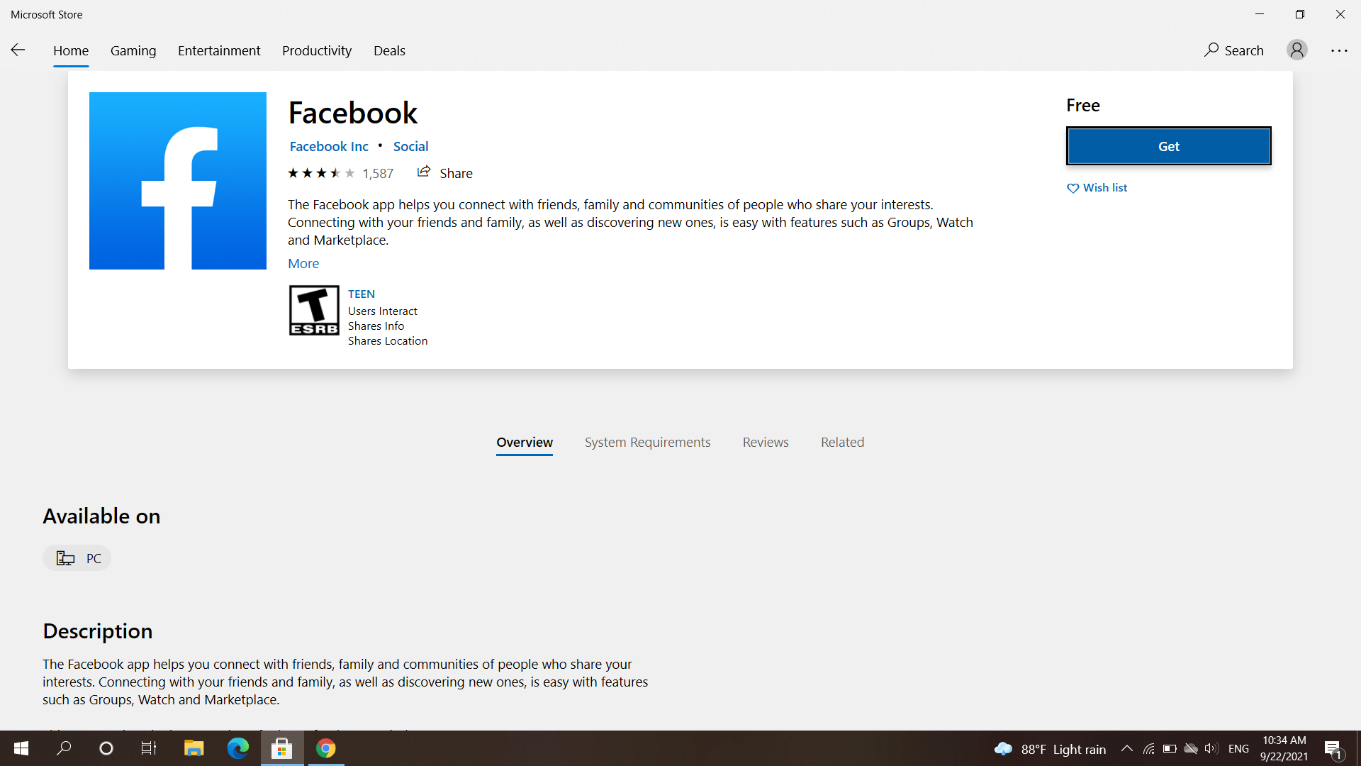 Bước 3: Click chọn Get để tải Facebook về máy của bạn